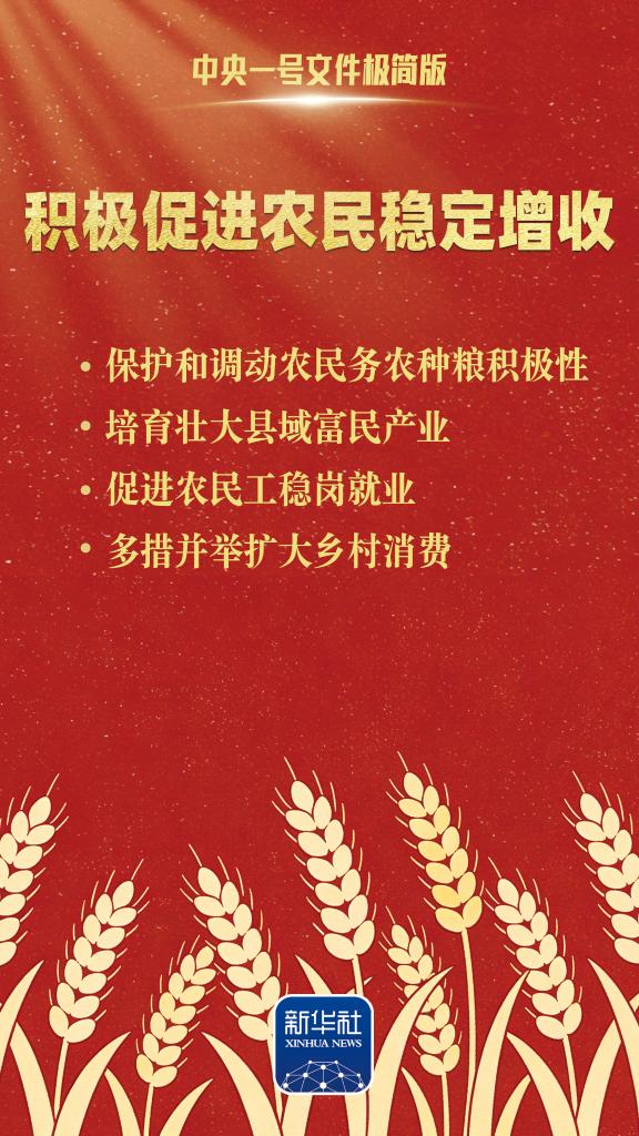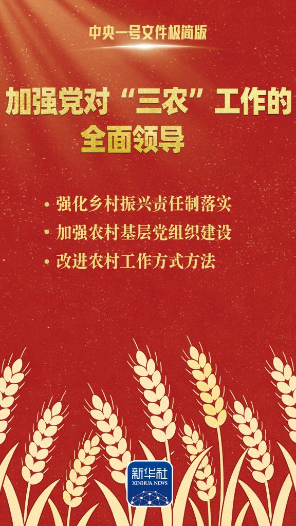 索引号: 3070211020000043000000/2026020500000064 发布机构: 生效日期: 2026-02-05 废止日期: 文 号: 所属主题: 上级文件 中央一号文件,极简版来了! 来源:新华网 发布时间:2026-02-05 浏览次数: 次 【字体:小 大】 2026年中央一号文件2月3日发布,这是“十五五”首个中央一号文件。这份名为《中共中央 国务院关于锚定农业农村现代化 扎实推进乡村全面振兴的意见》的中央一号文件,对今年“三农”工作做了六个方面的重点部署。跟随我们整理的这份极简版海报,一起学习。 【打印正文】 分享到: 【字体:小 大】